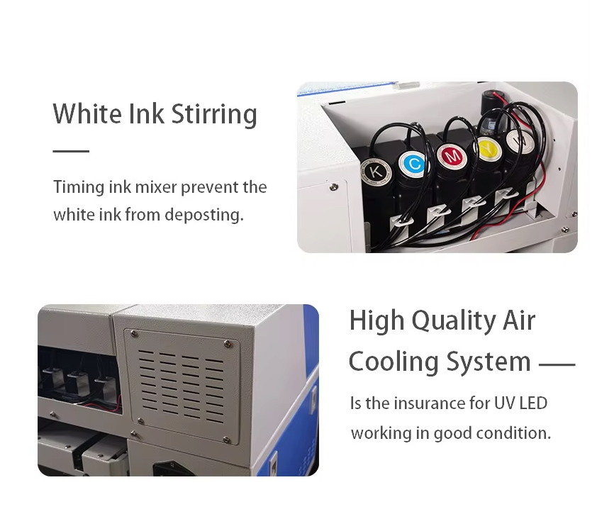 Das aufgerüstete Modell verfügt außerdem über eine verbesserte Tintenzirkulation und ein Rührsystem für weiße Tinte, um Verstopfungen zu vermeiden und einen gleichmäßigen Tintenfluss zu gewährleisten - ideal für den langfristigen Einsatz in anspruchsvollen Produktionsumgebungen. Ganz gleich, ob Sie Handyhüllen, Etiketten, Karten, Verpackungen oder Werbeartikel bedrucken - dieser Drucker bietet die Leistung und Zuverlässigkeit, die Sie für Ihr Unternehmen benötigen.